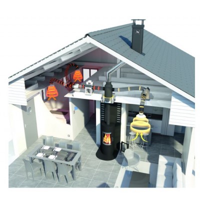 Généralités: Le système de distribution d'air chaud AIRWOOD Confort+ complète idéalement tout type d'installation de chauffage à bois bûches ou granulés. Il permet d'harmoniser au mieux la chaleur émise dans l'habitation et de valoriser une partie des calories perdues par les fumées.