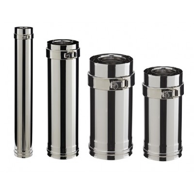 Eléments droits en inox pour une application à l'intérieur des bâtiments. Le système PGI est un conduit de fumée inox concentrique pour les appareils à granulés.