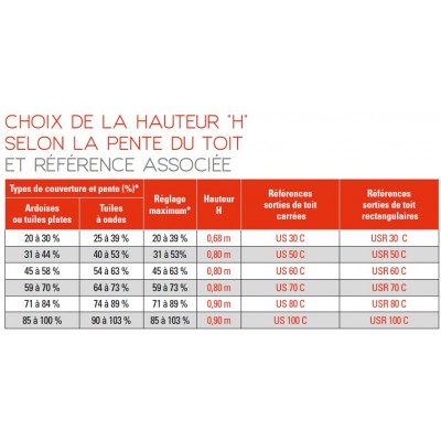 Sortie de toit carrée recevant un conduit isolé flexible LISS-ISO DP.