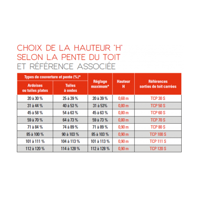 - la hauteur de la sortie de toît en cm (en se référent au tableau correspondant)